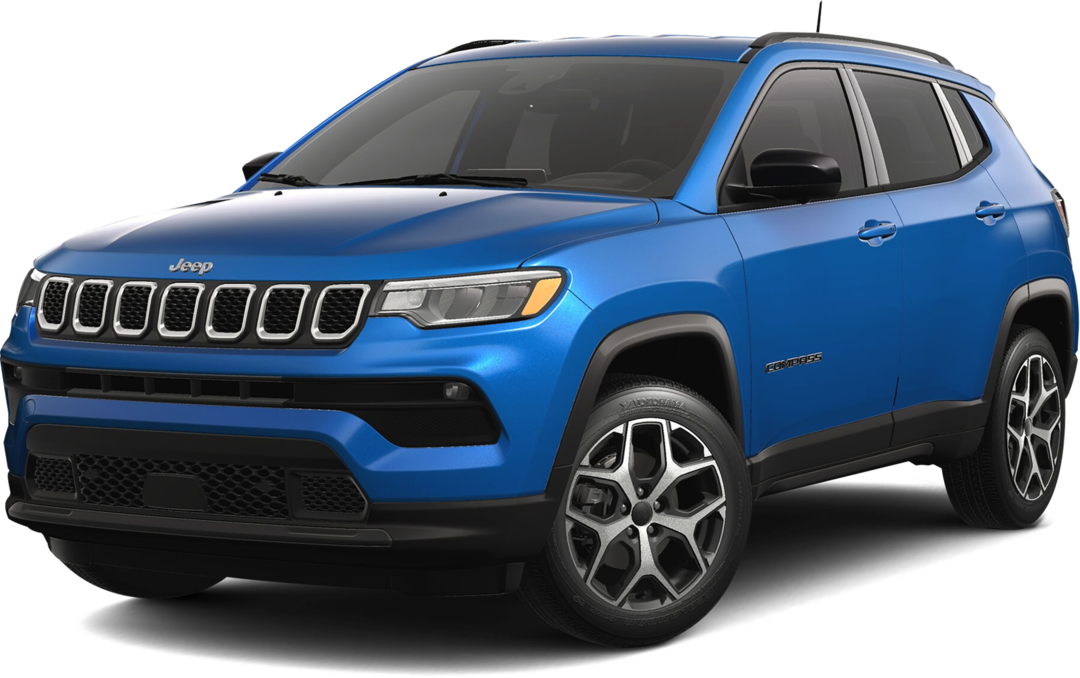 The Jeep® brand makes the Compass modern and attractive. The front fascia features nice LED headlights and a bold seven-slot grille. The side profile is sculpted and athletic, with pronounced wheel arches hinting at the SUV's capability. Inside the spacious cabin, you'll find high-quality materials like available leatherette upholstery and soft-touch surfaces. Ambient LED lighting sets a premium tone, while an optional dual-pane panoramic sunroof enhances the interior's brightness. Versatile 60/40 split-folding rear seats and up to 59.8 cubic feet of cargo space accommodate all your gear.